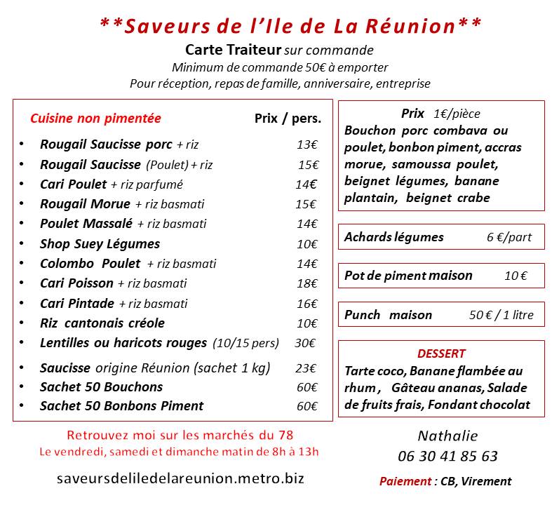 Un traiteur à Bezons pour nous faire découvrir la cuisine traditionnelle de l’ile de La Réunion.